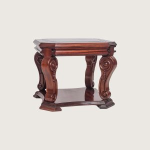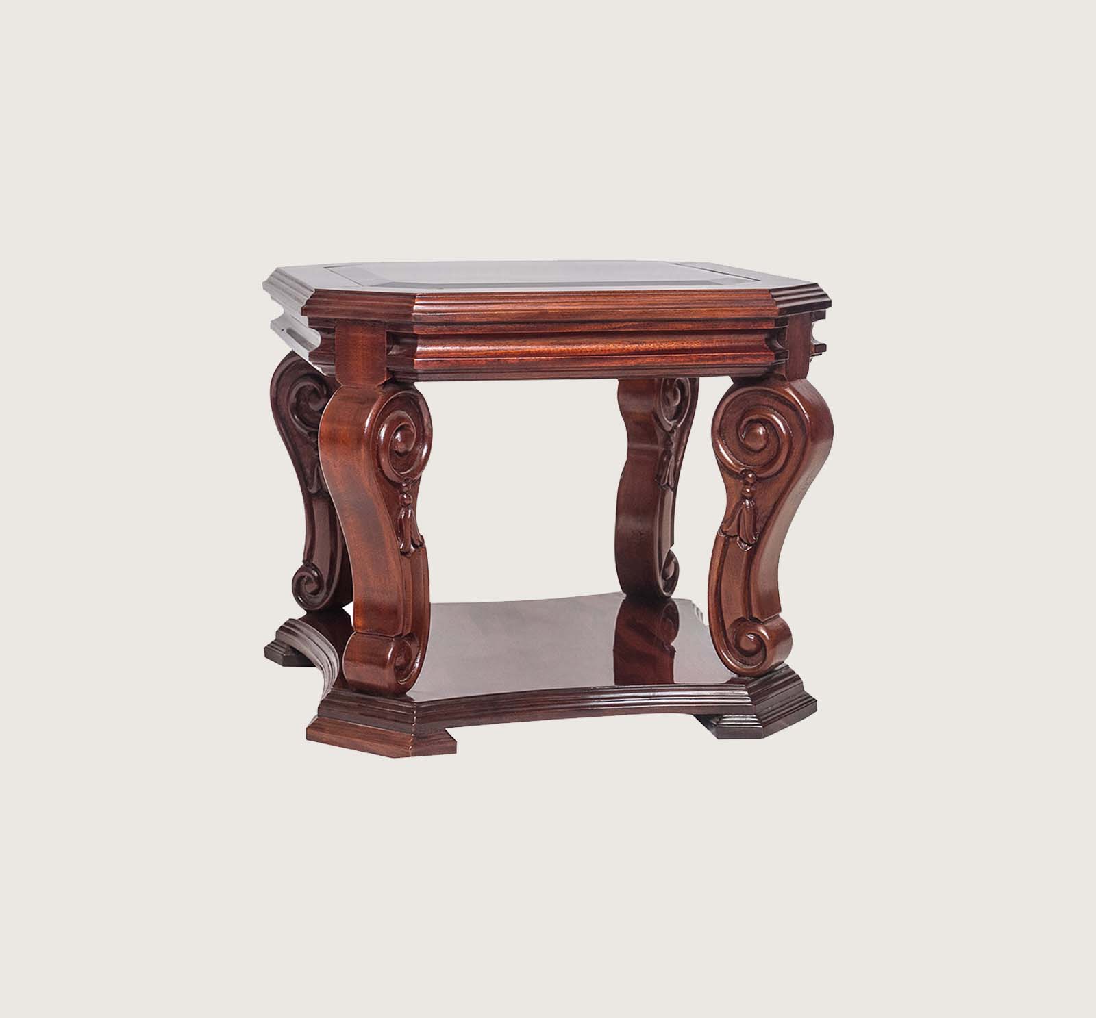 The Corinth Table is a masterpiece of sculptural craftsmanship. Its bold, scroll-carved legs evoke classical Corinthian forms, while the rich hardwood body radiates warmth and sophistication.