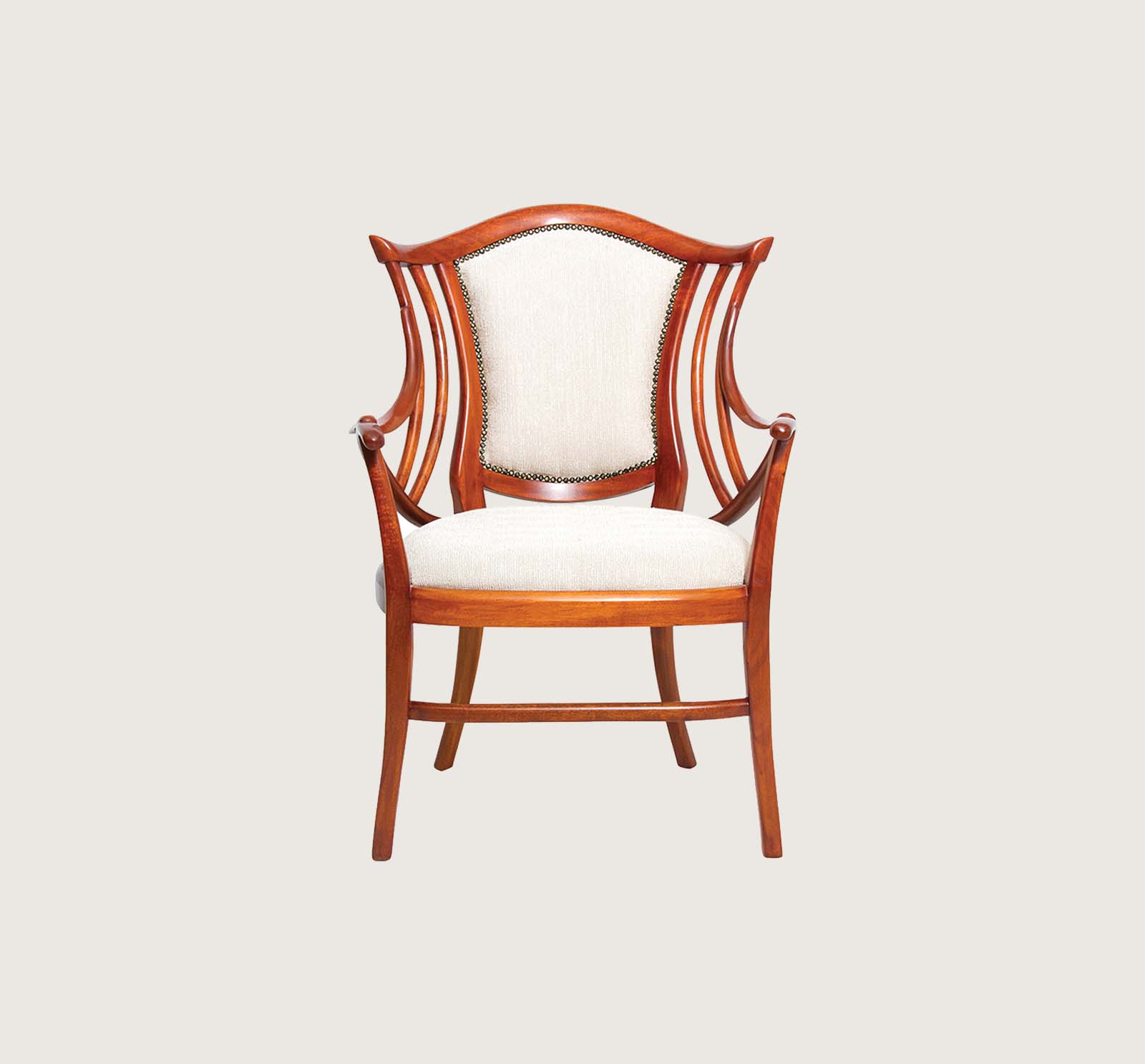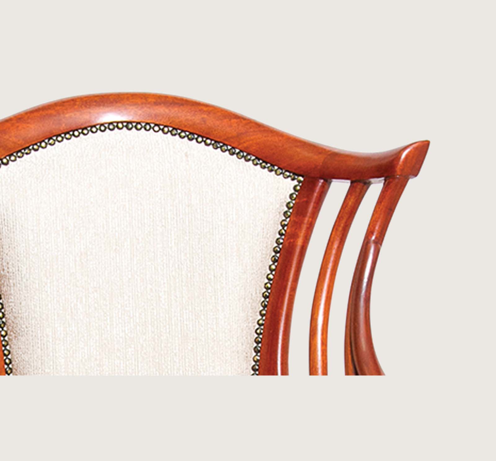 The Cornwall is a distinctive winged chair designed to transition effortlessly from dining spaces to bedrooms. Expertly cut and carved for enduring strength and stability, its sculptural wooden frame is balanced by a semi-upholstered back that enhances comfort without overwhelming the room.