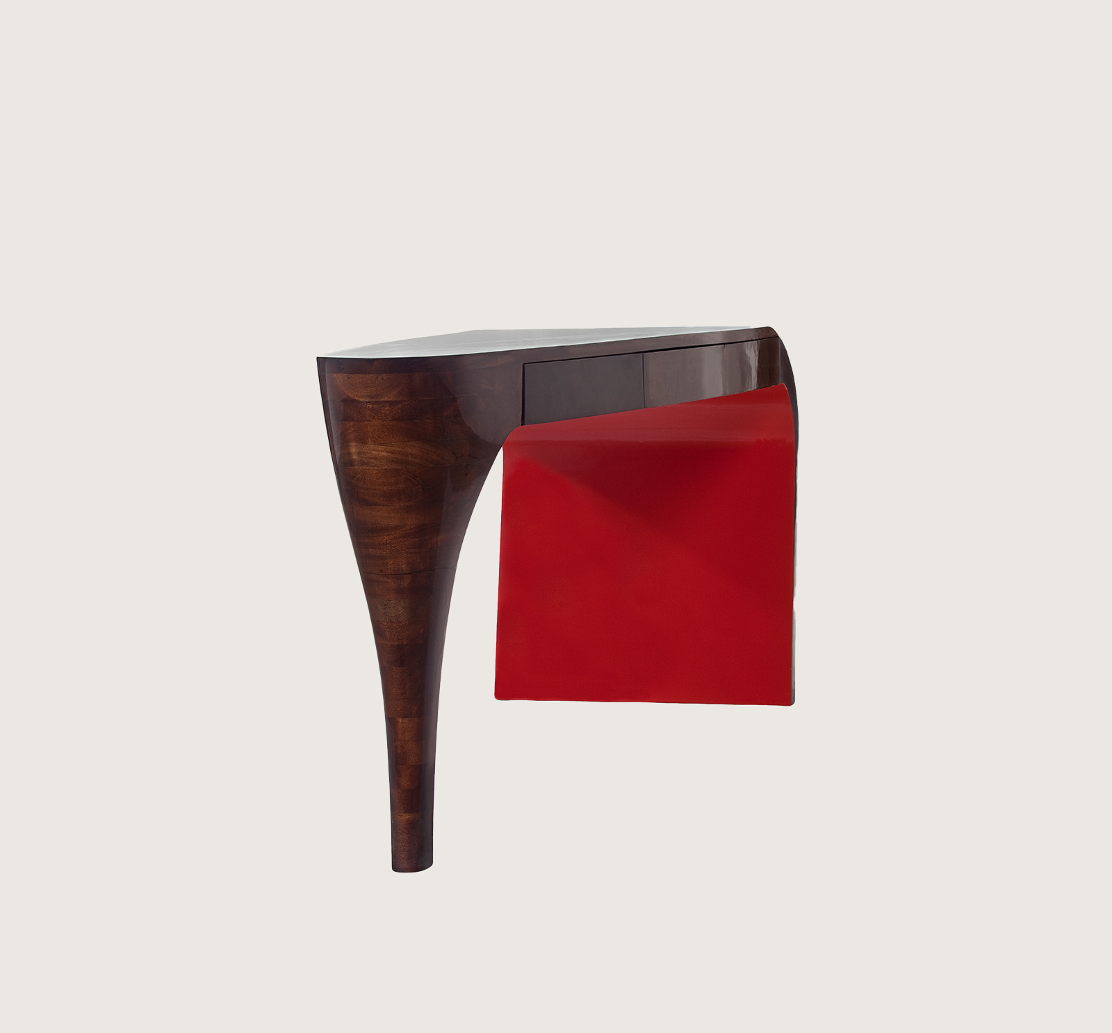 The Elleto is a bold design statement, born from the elegance of Louboutin’s red-bottom heels and reimagined in wood.