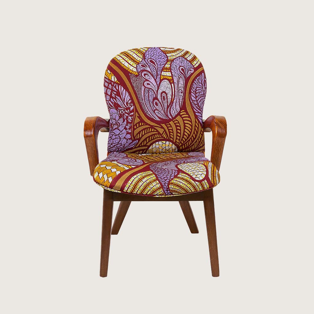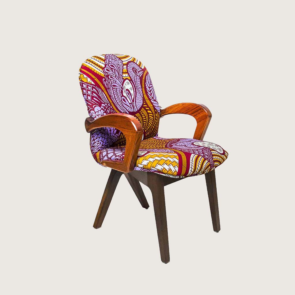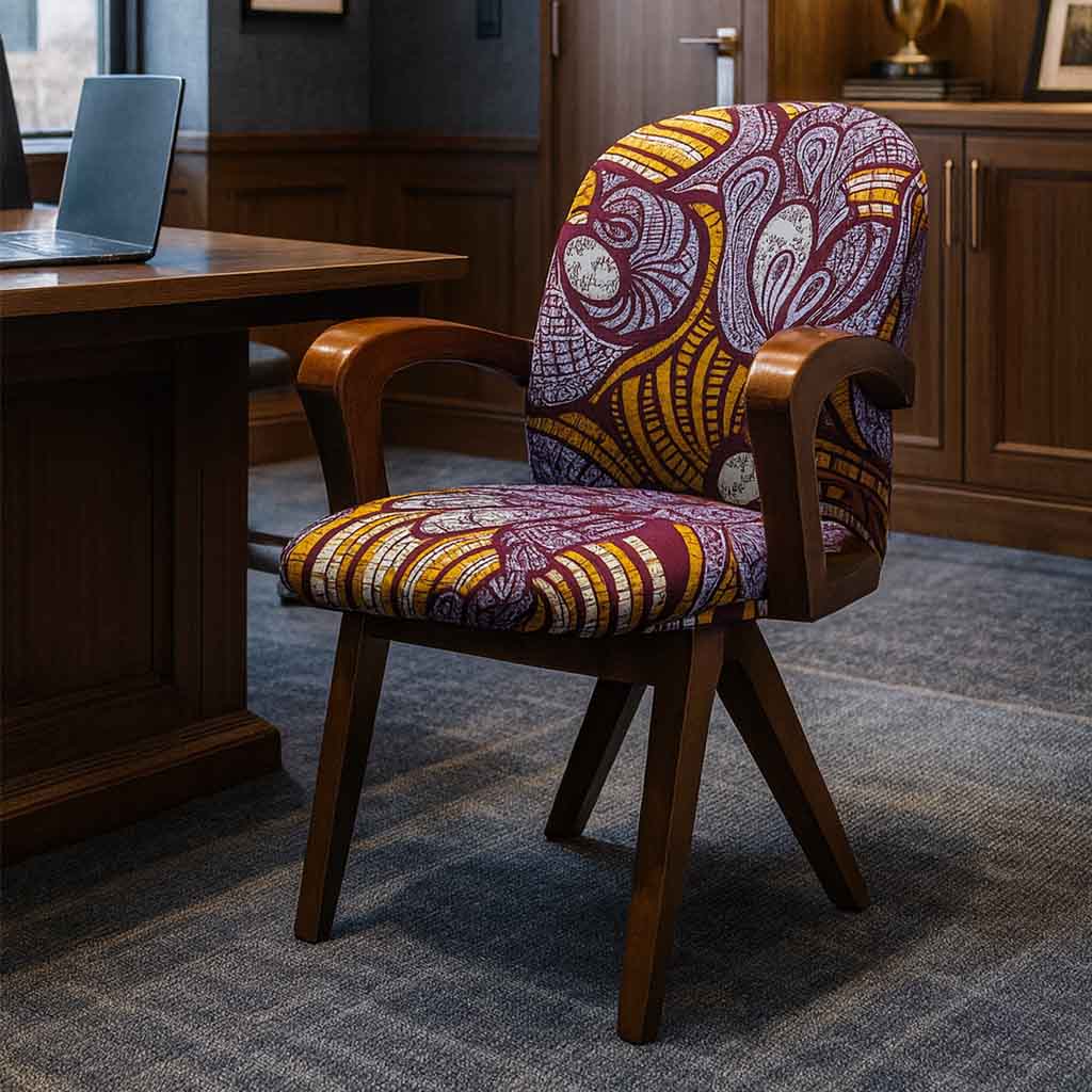 Entebbe chairs are designed in the shape of very typical we often see in offices. However, with added comfort in the upholstery and a curved back. This African themed fabric is perfect for