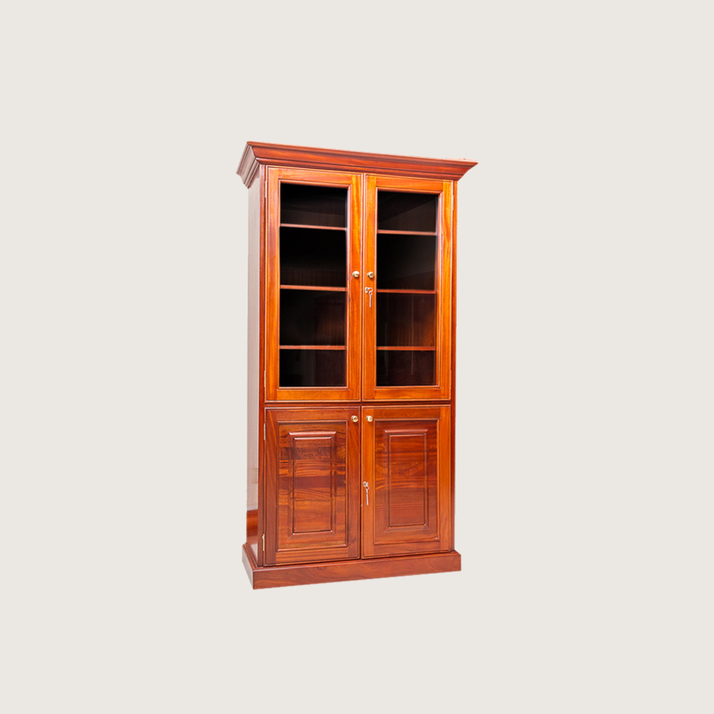 The Governor Display Cabinet is handcrafted from rich mahogany for a timeless and professional presence. Featuring two lockable glass doors on the upper section, it offers quick access and elegant display for important documents or literature. The lower section includes two lockable solid mahogany doors, ensuring secure storage for sensitive files and valuables.