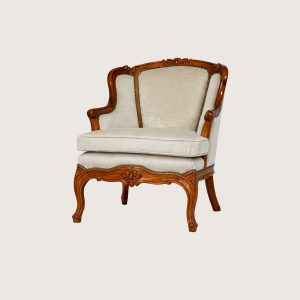 The Queen’s Occasional Chair is a celebration of refined mahogany craftsmanship and sculptural elegance. Its solid wood frame is adorned with delicate hand-carved detailing along the crest rail and apron, while gracefully curved cabriole legs create a poised, regal stance.