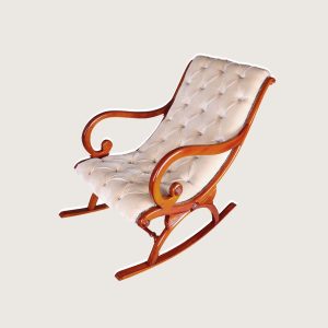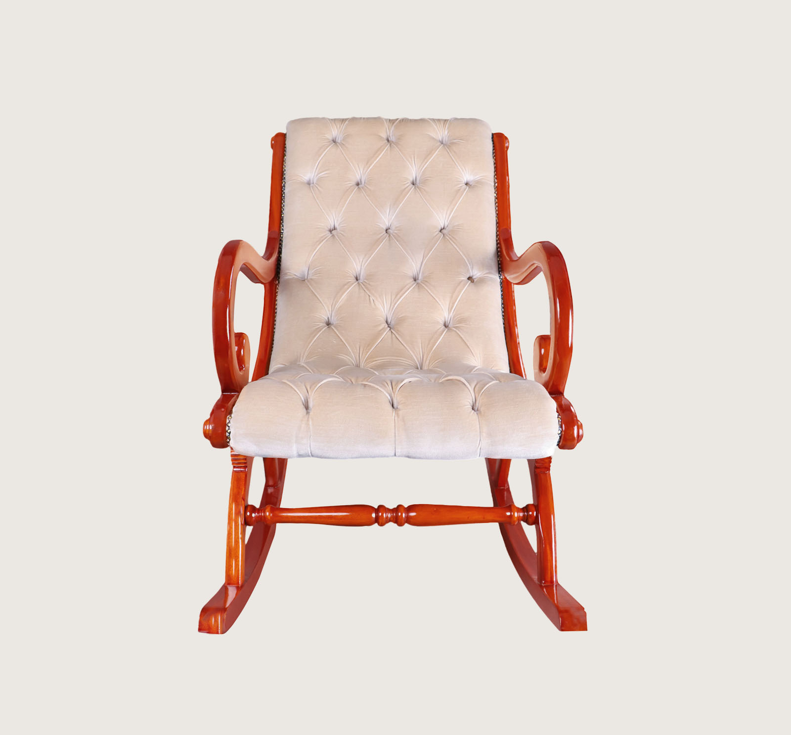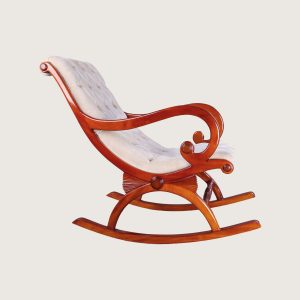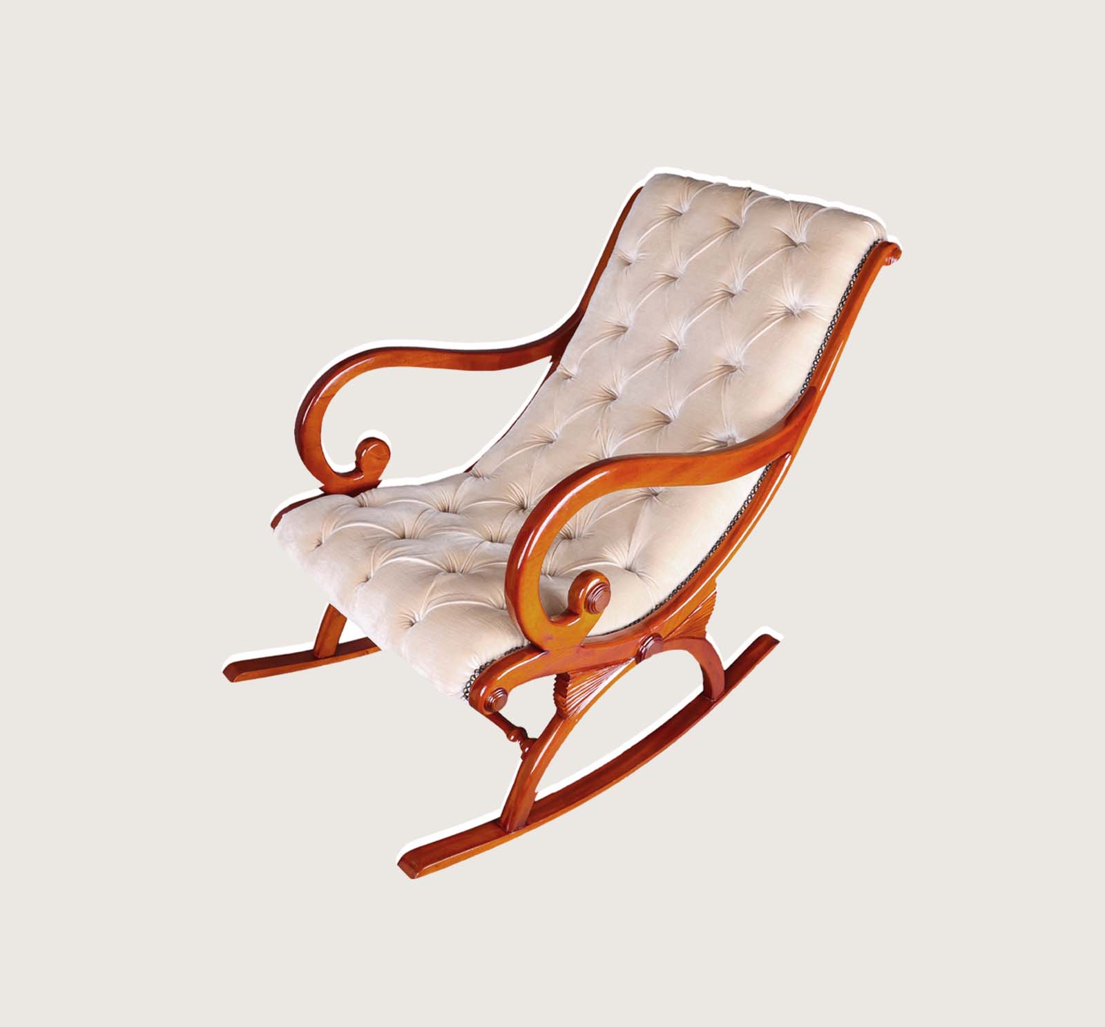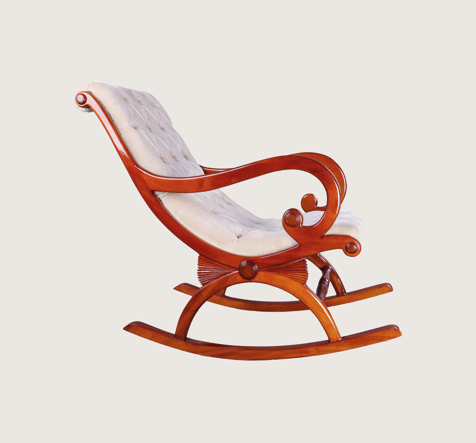 Hand-carved from lustrous hardwood, its sweeping curves and sculpted arms flow seamlessly into a refined base, designed to deliver a smooth, effortless motion.