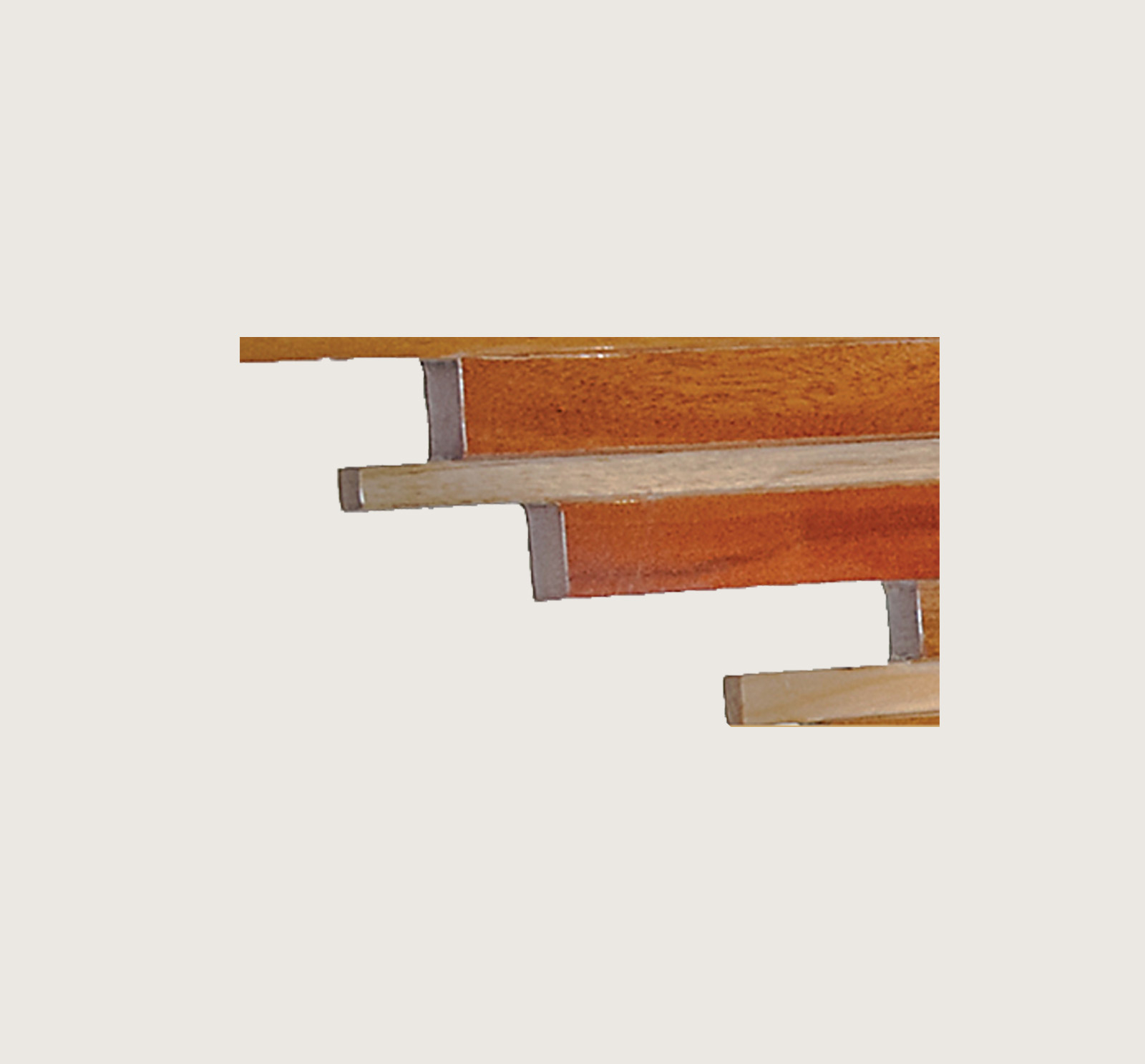 Matched with its console, the pair show off a skilfully jointed display of mahogany, mvuli and meru oak. The grain patterns for each ofthese woods are unlike others, and the differences are evident.