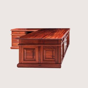 The Vice President was in fact created for the VP of Kenya himself, after he requested a customising of the Executive desk with more detail. The added columns refer back to Roman design and architecture, which always relates back to organisational structure and coherence. The Vice President gives you ample storage and surface space for you to be able to put your thoughts and ideas down in style.