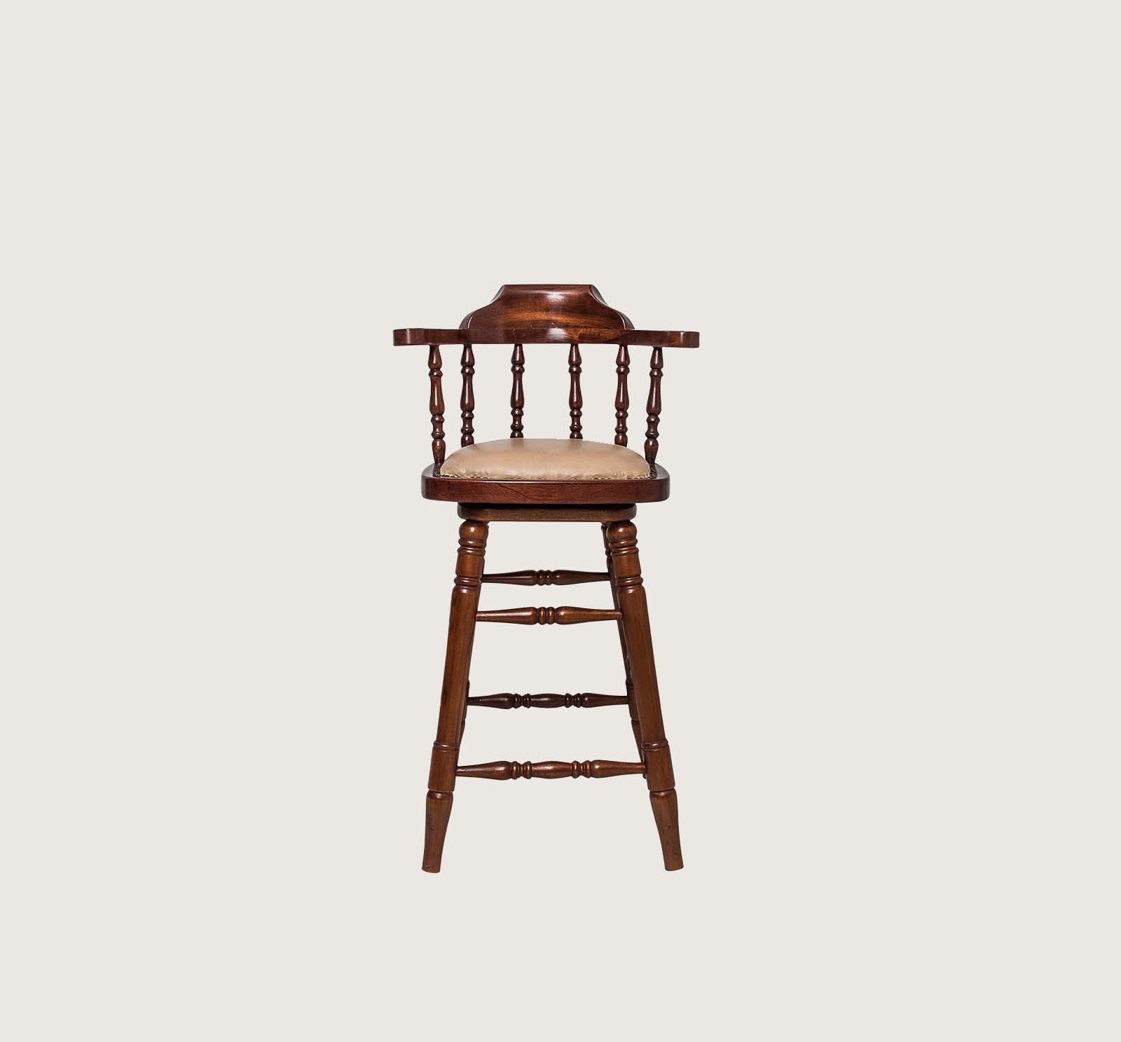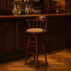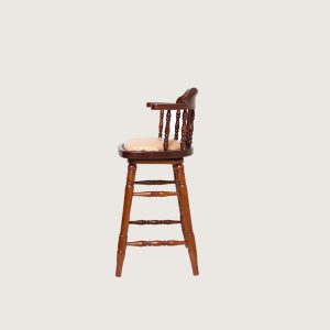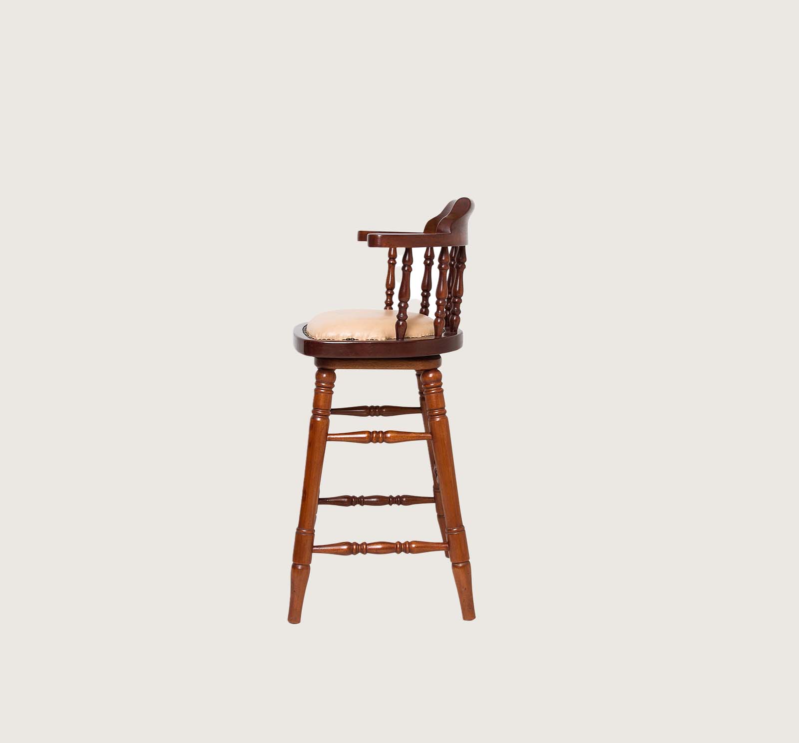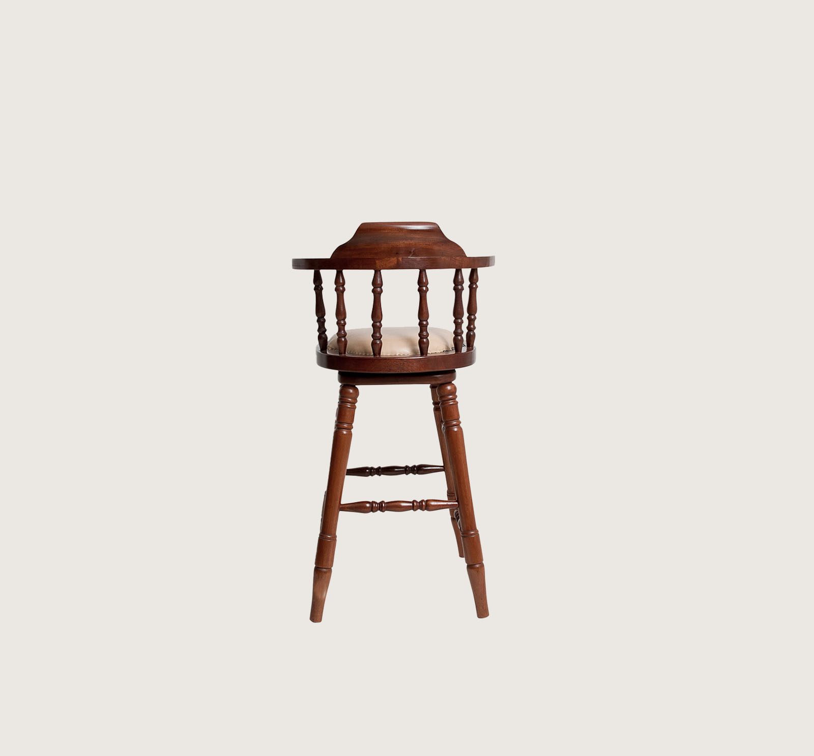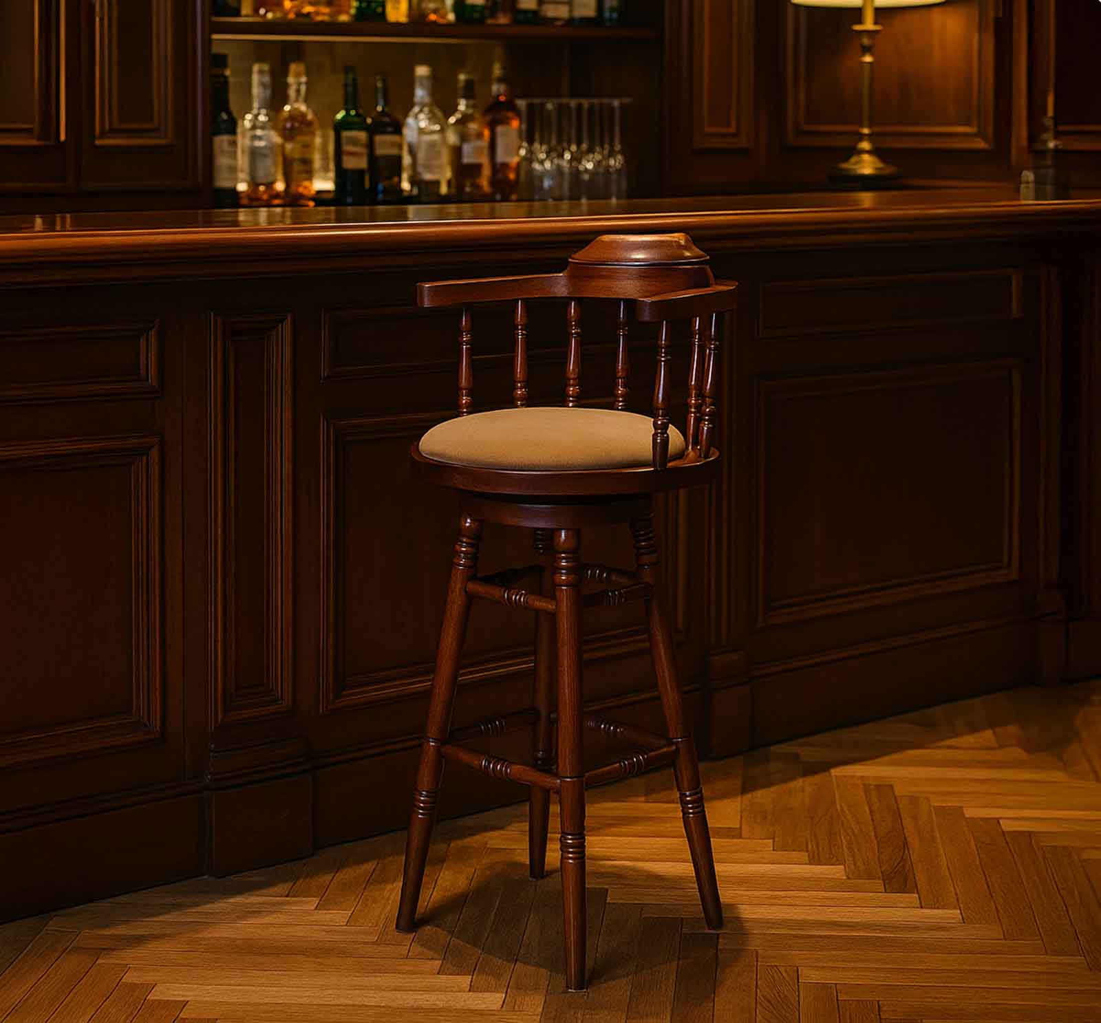 The Winston embodies timeless English charm in a refined bar stool design. Expertly crafted with precision joinery, it features a smooth swivel function, elegantly turned spindles, and a contoured backrest with graceful arm supports. .